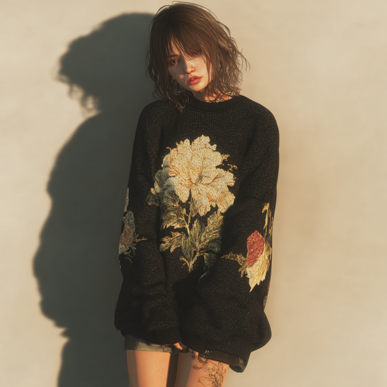Aaeda's sweaters aren't just garments—they're artistic statements. Each piece features thoughtfully integrated floral elements that elevate everyday basics into something special, creating a perfect balance between sophisticated minimalism and eye-catching detail.