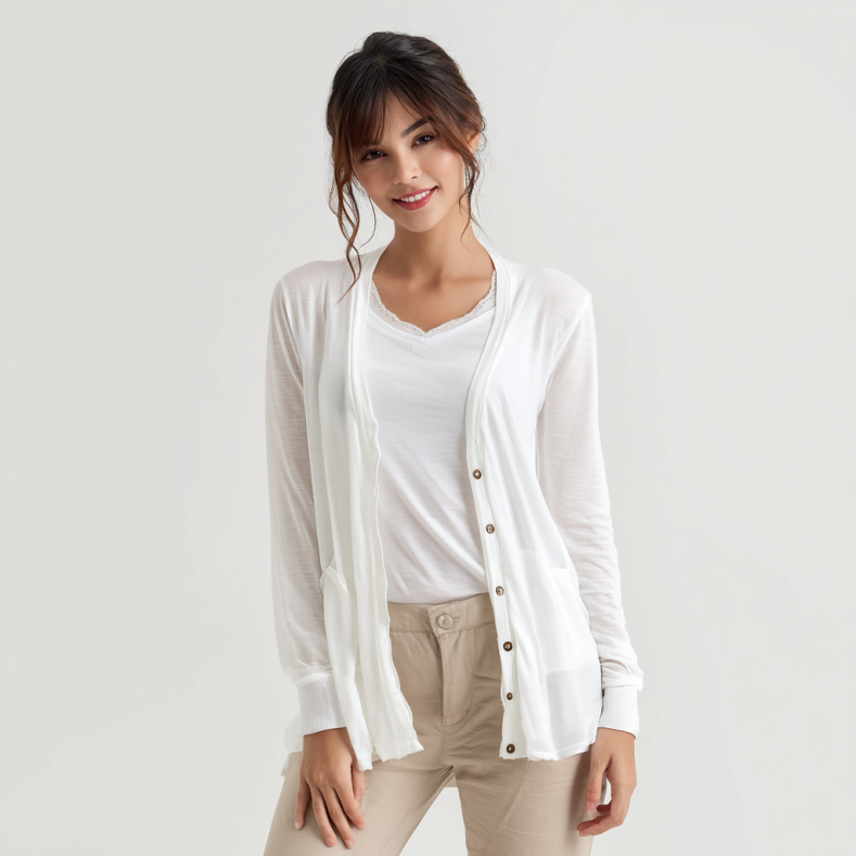 Elevate your layering game with this elegant white cardigan from AAEDA, crafted from soft rayon fabric for a lightweight and breathable feel. This versatile piece is perfect for casual outings or office wear, offering a timeless design that pairs effortlessly with any wardrobe staple.